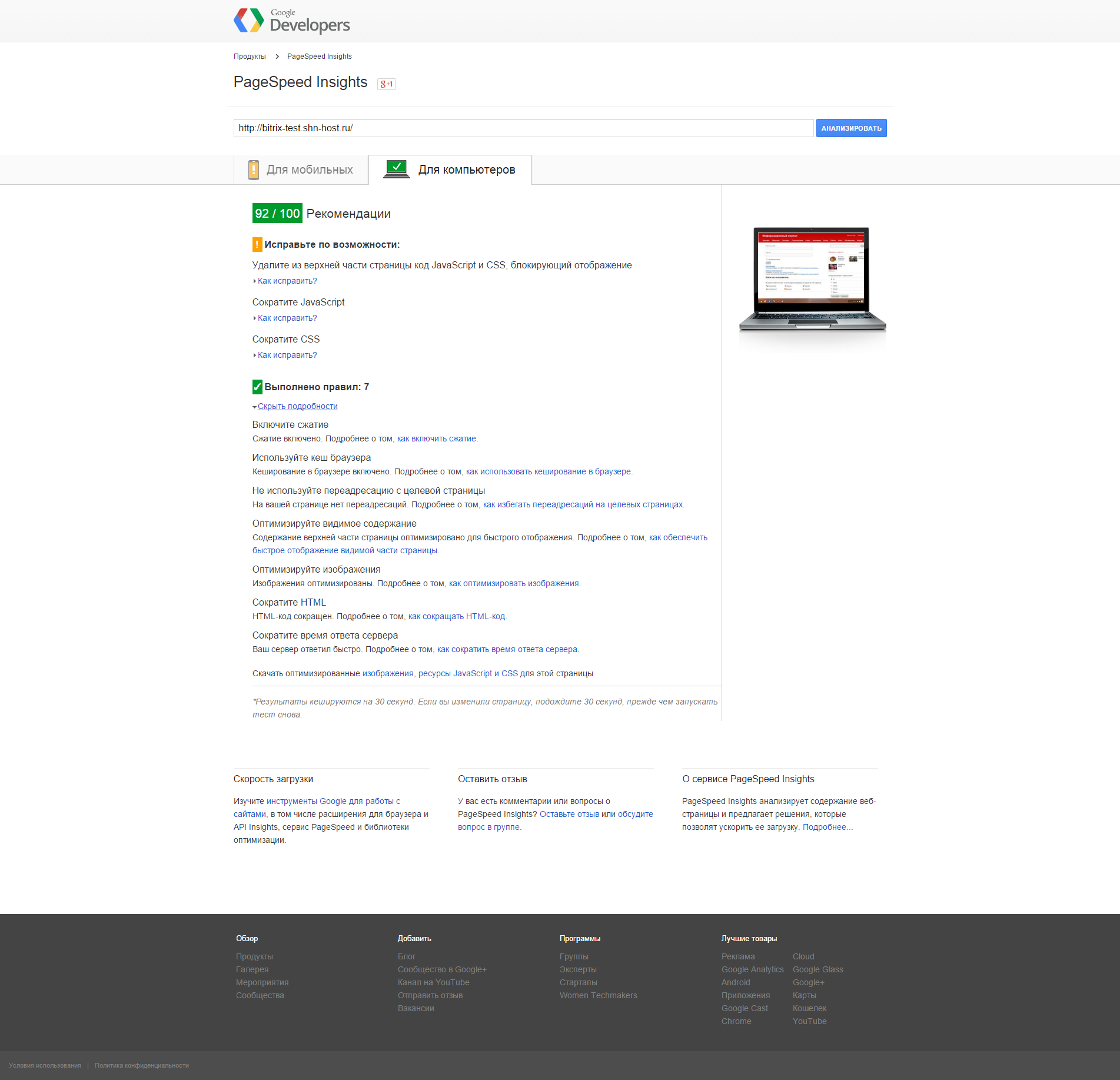 Скорость загрузки Bitrix-сайта на нашем хостинге