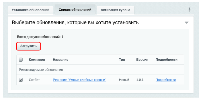 Выбрав компонент, кликните на ссылку “Установить” → “Загрузить”: