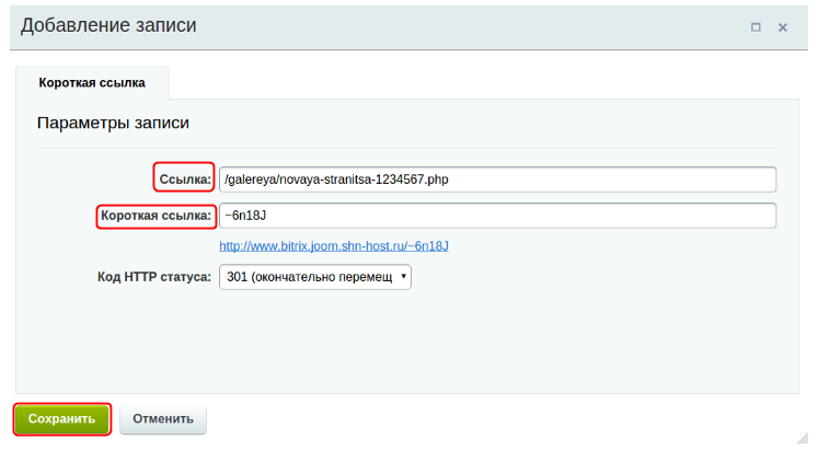 “Короткая ссылка” ー новый URL той же страницы. Обратите внимание, что короткая ссылка “создается” из случайного набора символов. Благодаря тильде (значок “~”) короткий URL не спутаешь с другим: