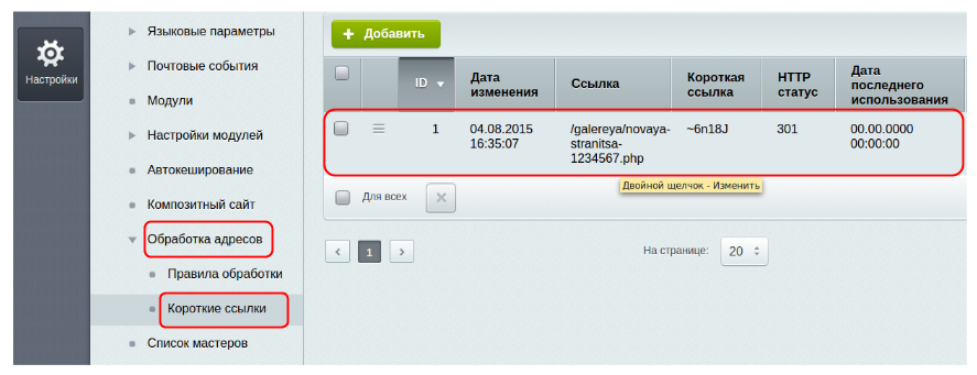 Что касается пункта “Список ссылок”, то здесь собраны все короткие ссылки (“Настройки” → “Настройки продукта” → “Обработка адресов” → “Короткие ссылки”):