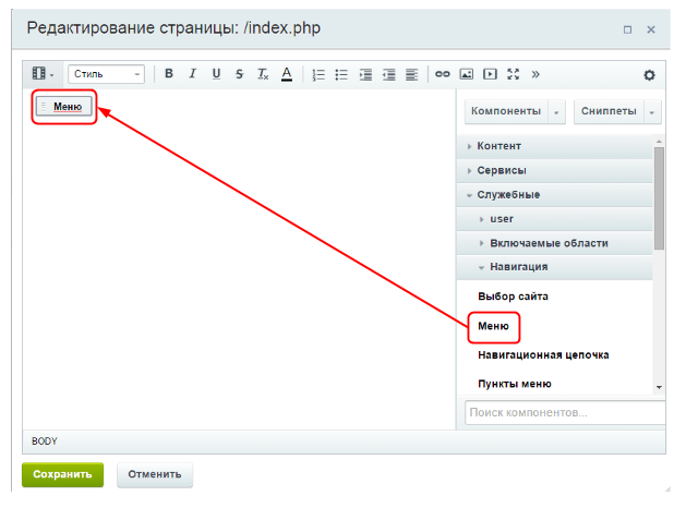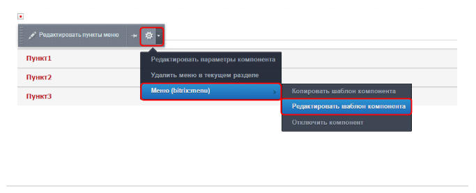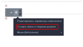 Найдите область, куда вы вставили меню и кликните на пункт “Создать меню в текущем разделе”: