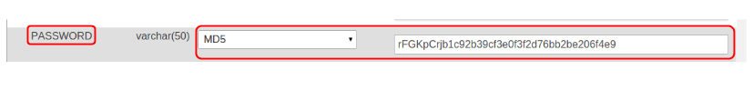 Как вы видите, сейчас пароль находится в зашифрованном виде. Кликните на “Изменить” → столбец Password → функция MD5 → новый пароль: