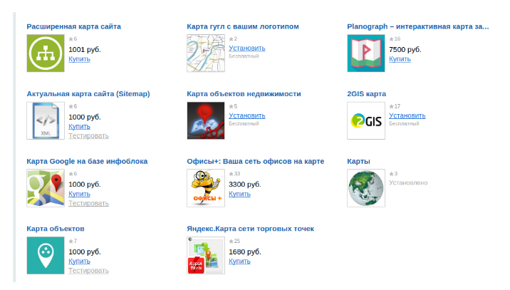 Прежде чем настройке карты, скачайте и установите соответствующий компонент: “Администрирование” → Marketplace → “Каталог решений” → “Поиск”: