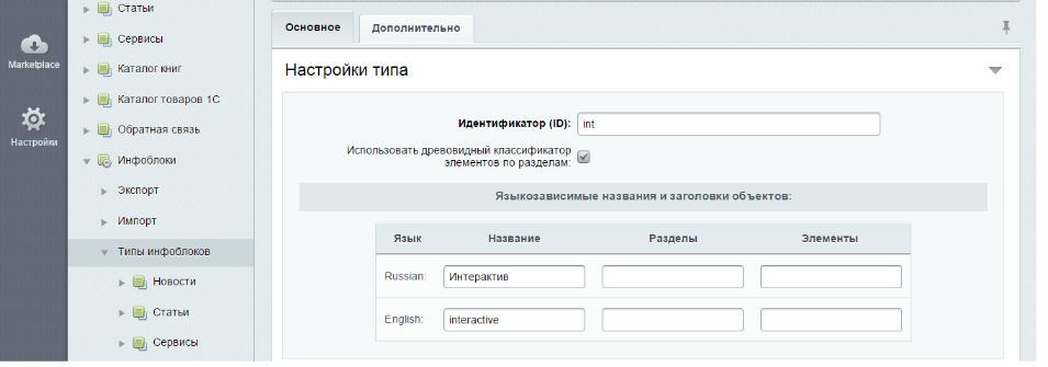 Перейдите в раздел “Администрирование” → “Контент” → “Инфоблок” → “Типы инфоблоков” → “Добавить новый тип” → “Сохранить”: