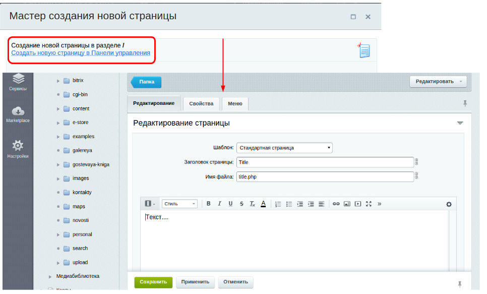 Как создать раздел и страницу в Bitrix