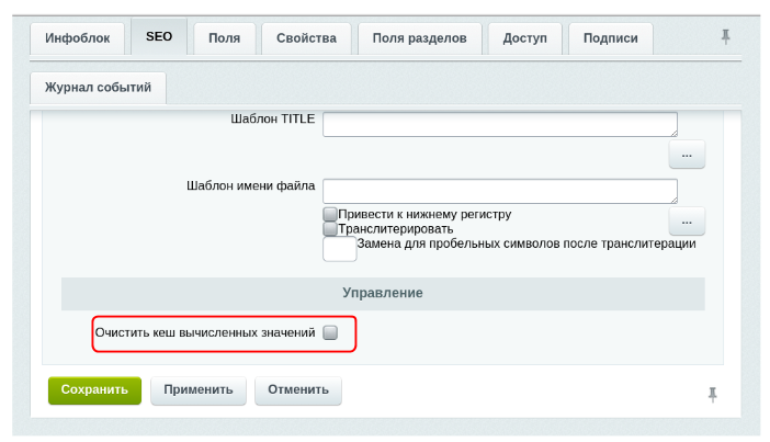 Кэширование каждого отдельно взятого компонента проводится “индивидуально”. Например, “Контент” → “Инфоблоки” → “Типы инфоблоков” → “Статьи” → SEO: